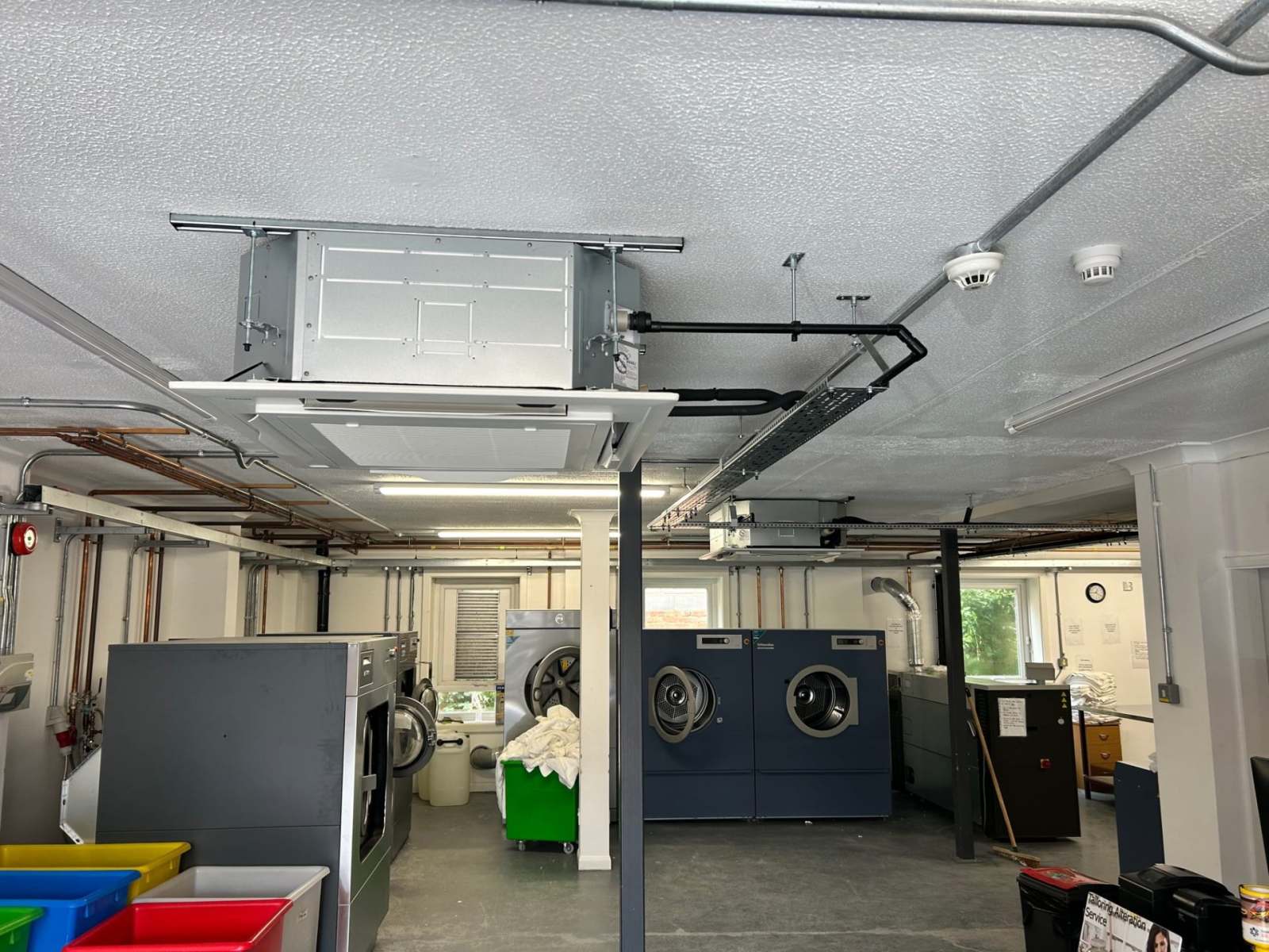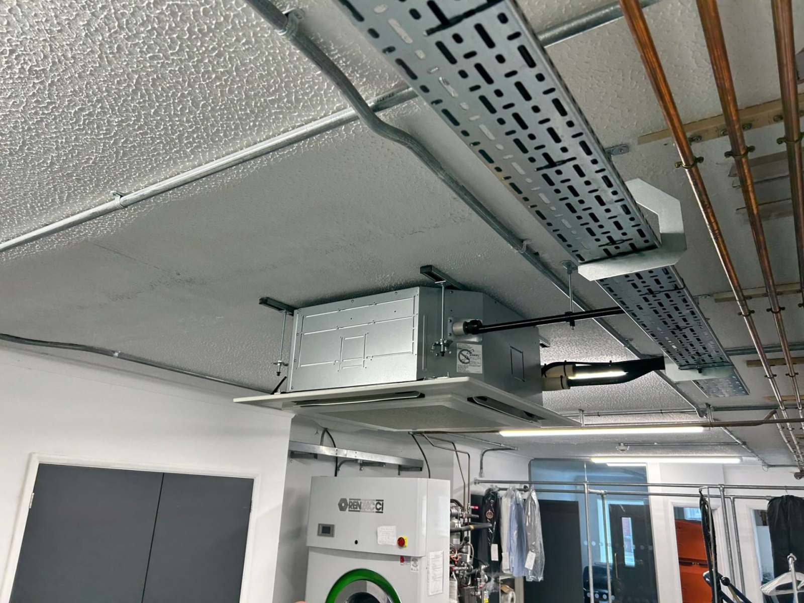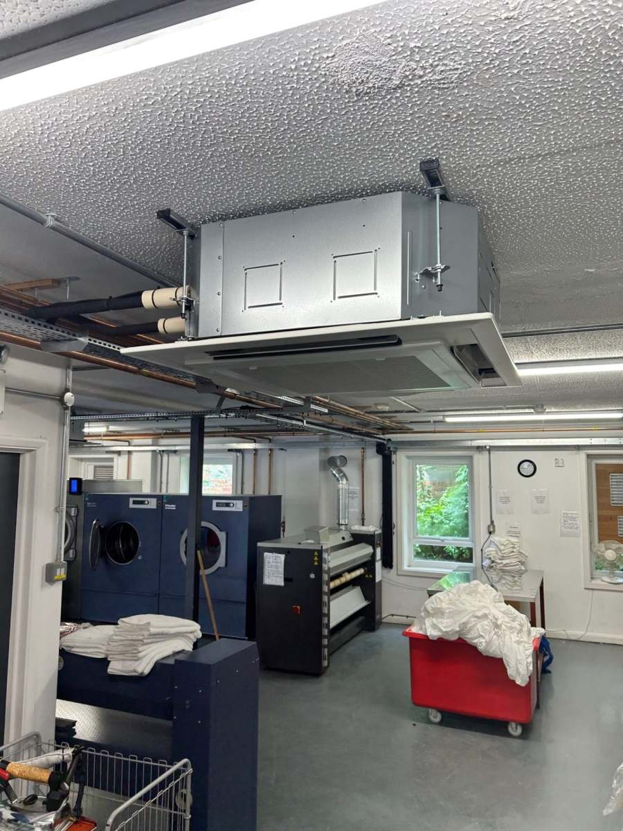 3x 10Kw Toshiba cassettes installed to Laundrette for cooling/heating throughout the year. Everything was on show as this is how customer likes his stuff to be installed.