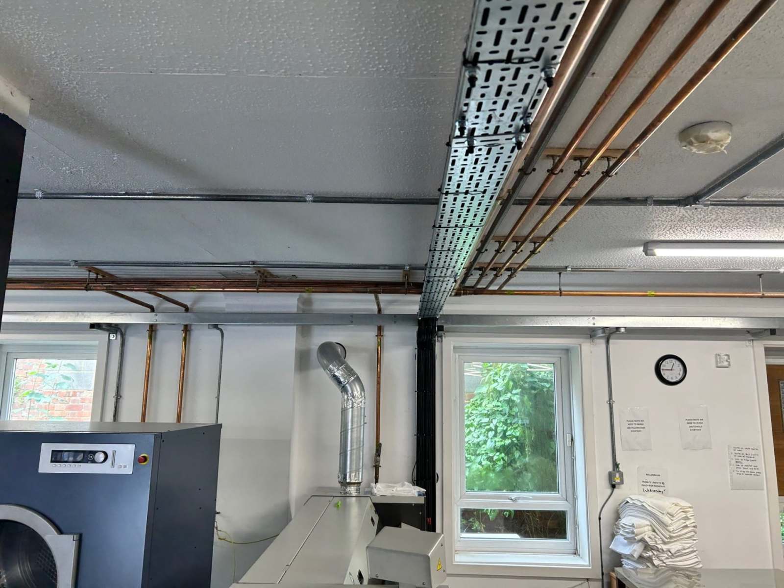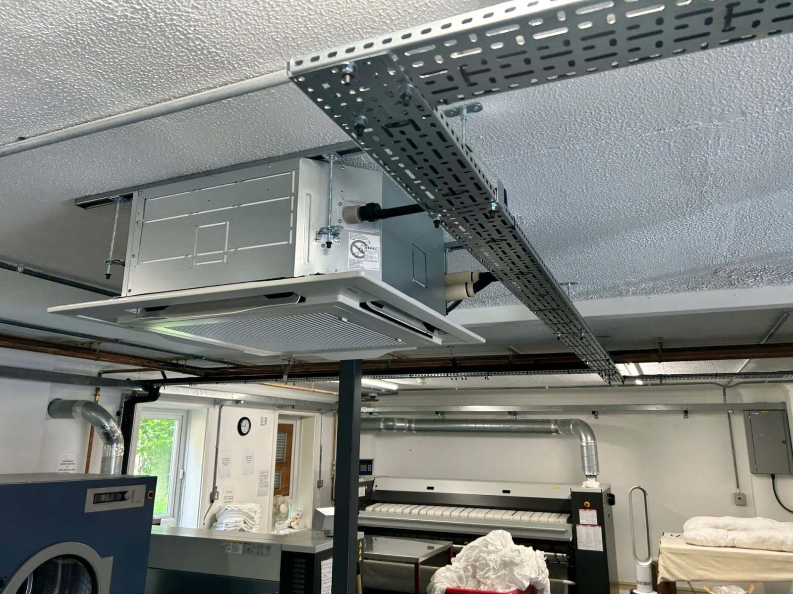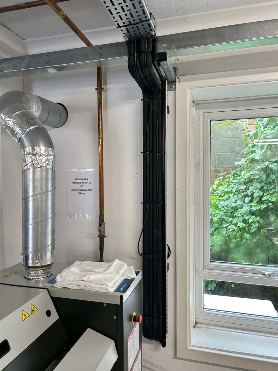 3x 10Kw Toshiba cassettes installed to Laundrette for cooling/heating throughout the year. Everything was on show as this is how customer likes his stuff to be installed.