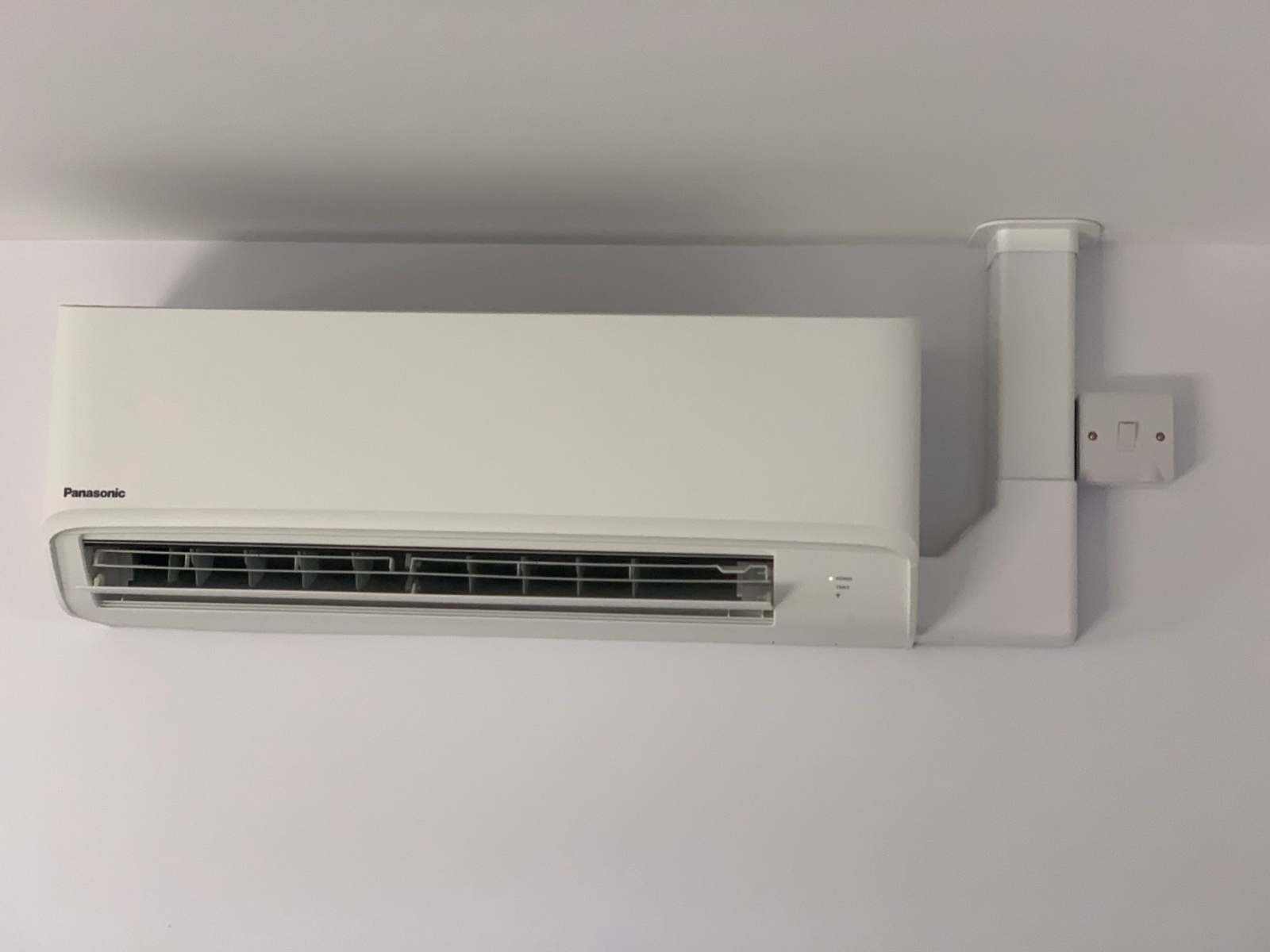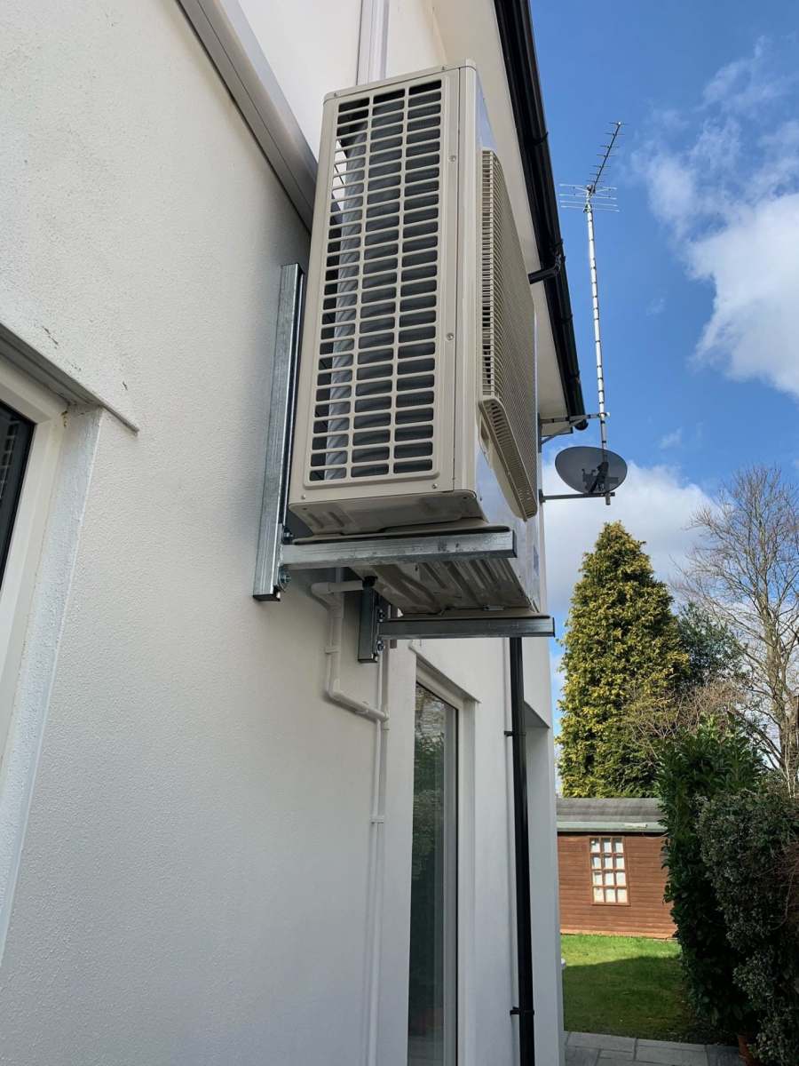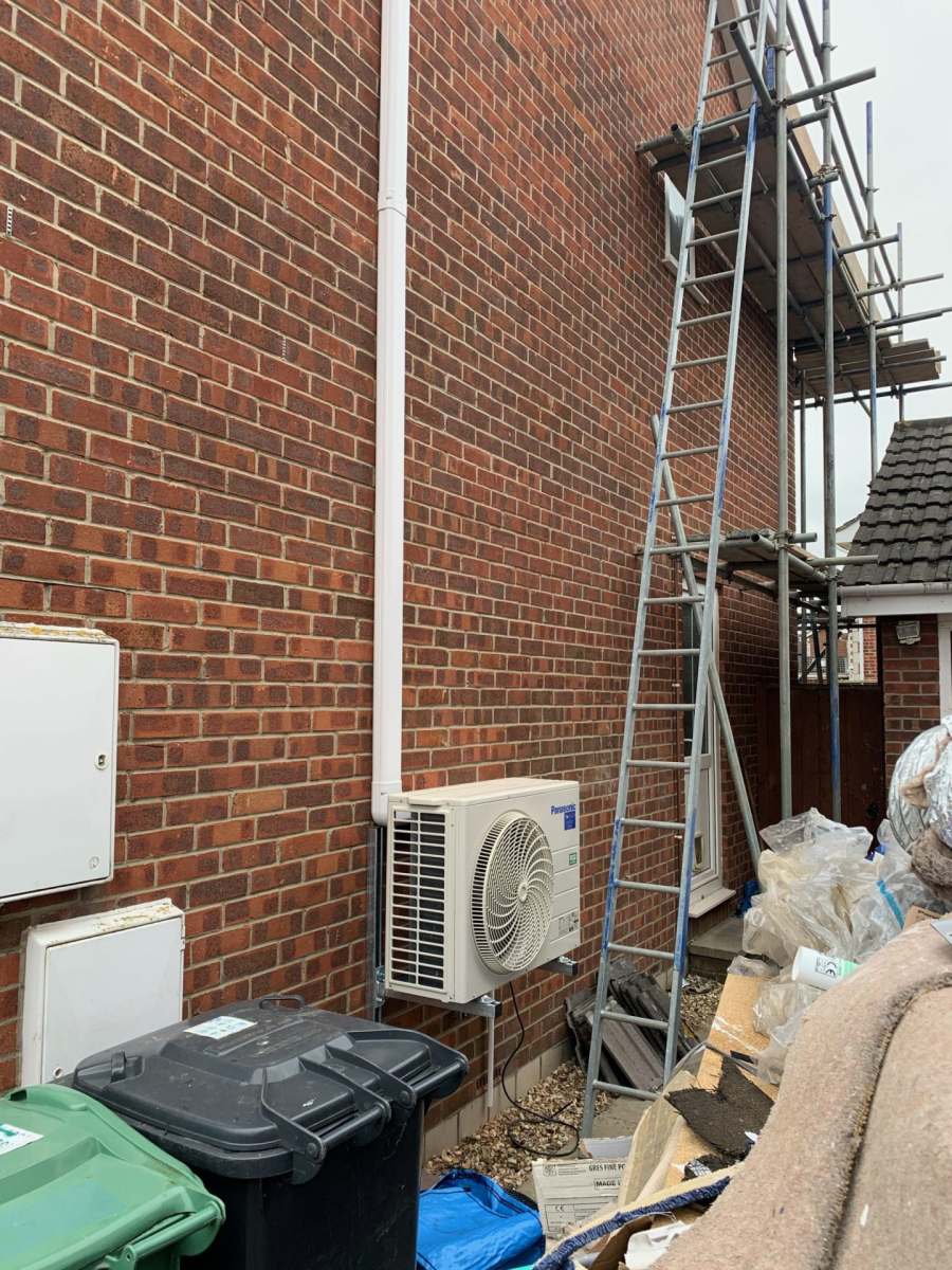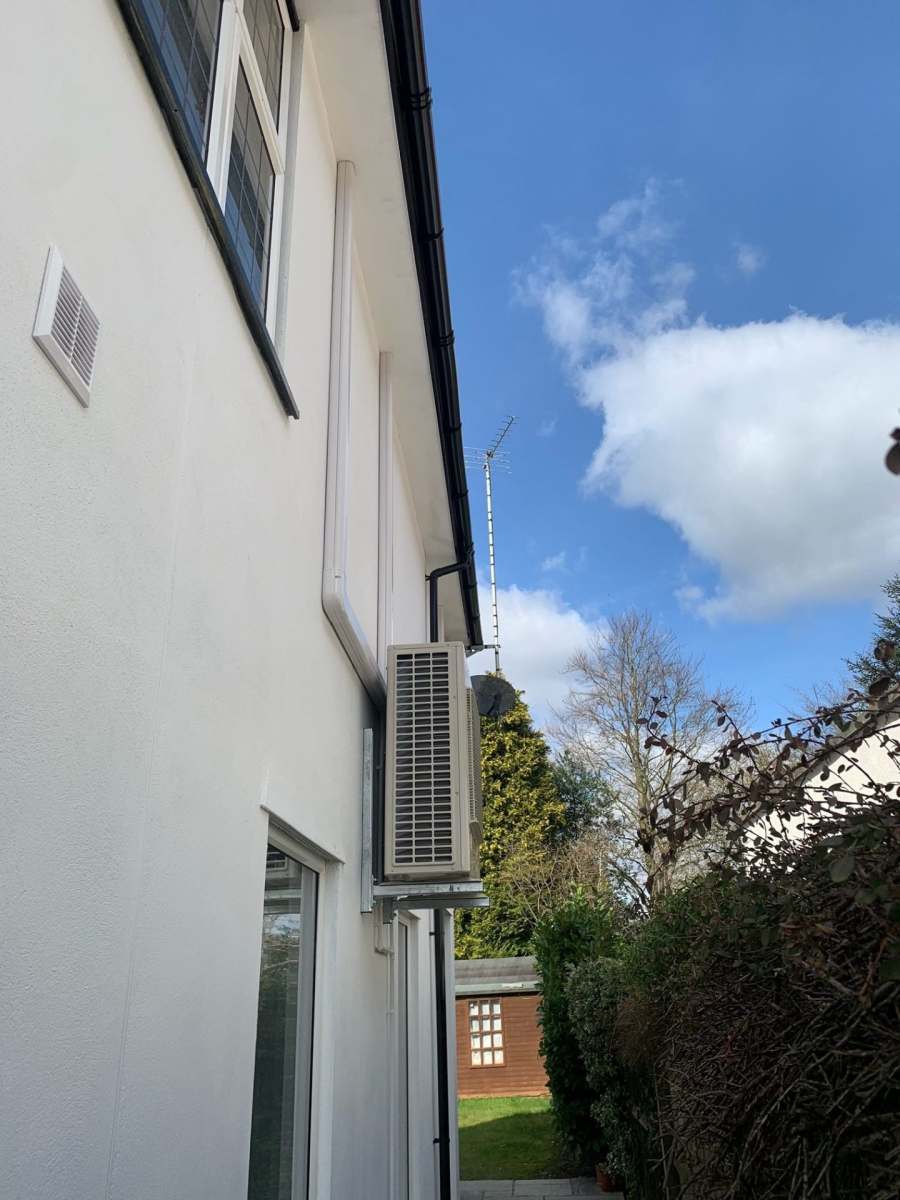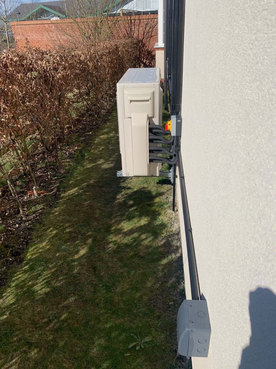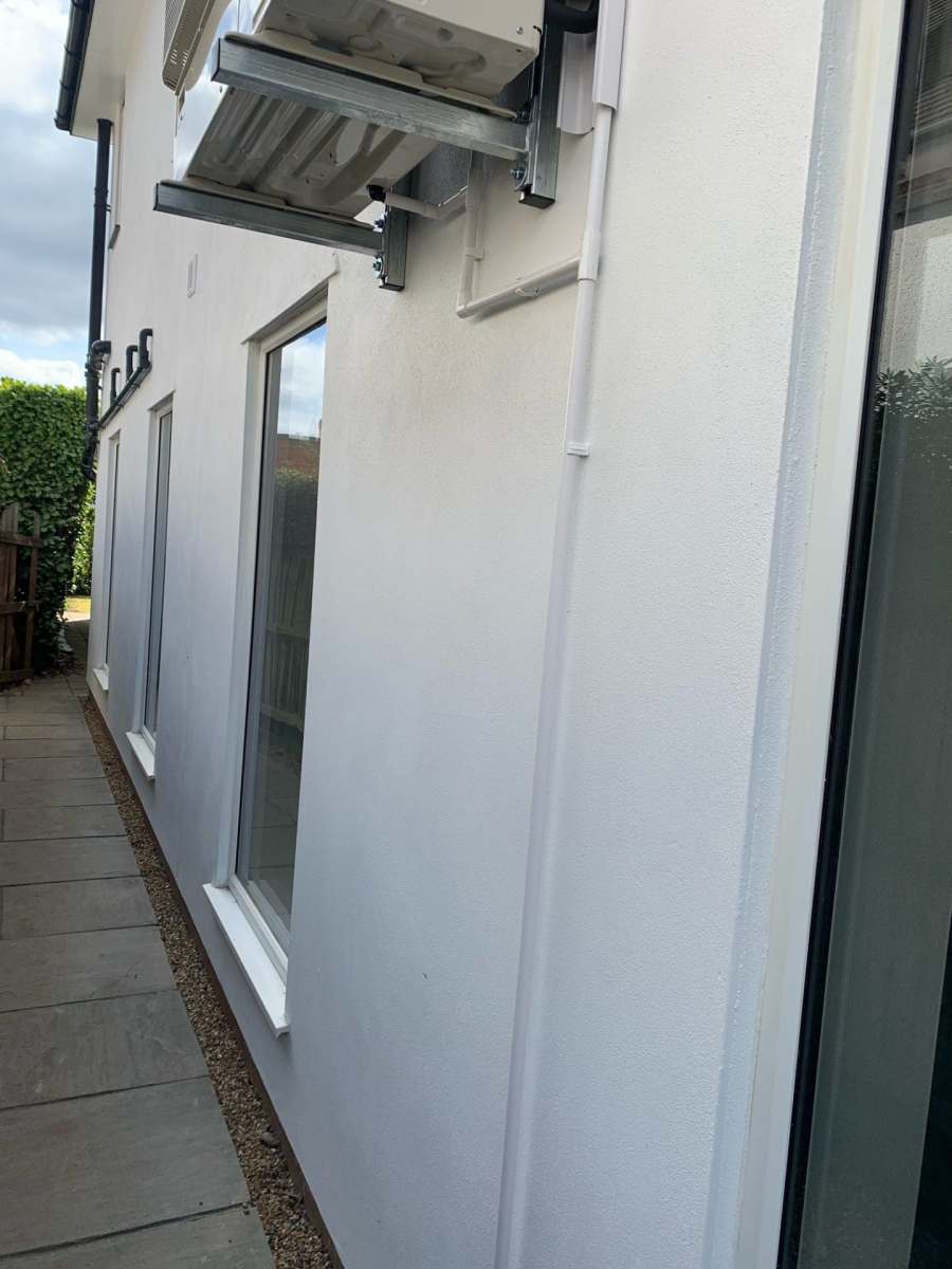 Another multi split system for a house. One unit needed pipework taking through loft to get to the outside wall. We managed to hide all the pipework in black trunking to match the rain water pipes.