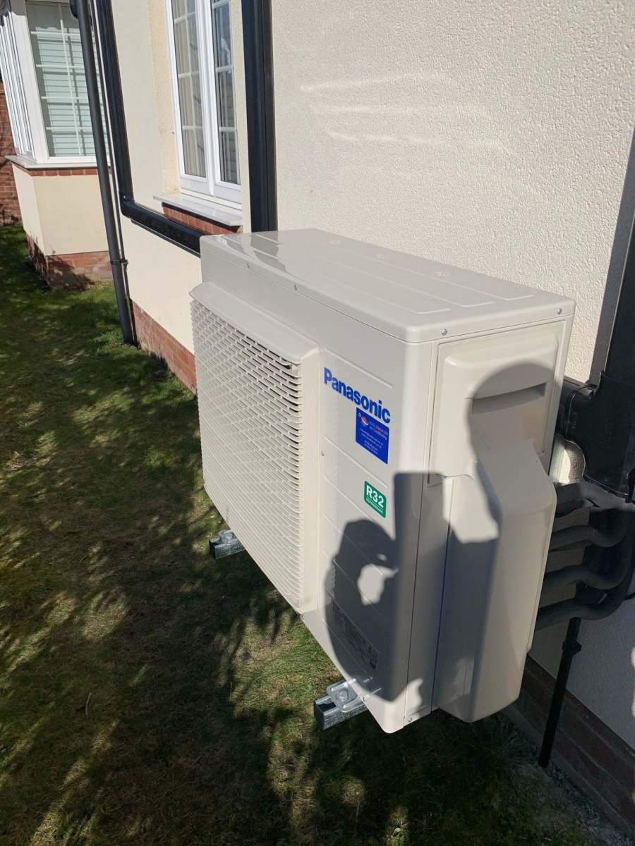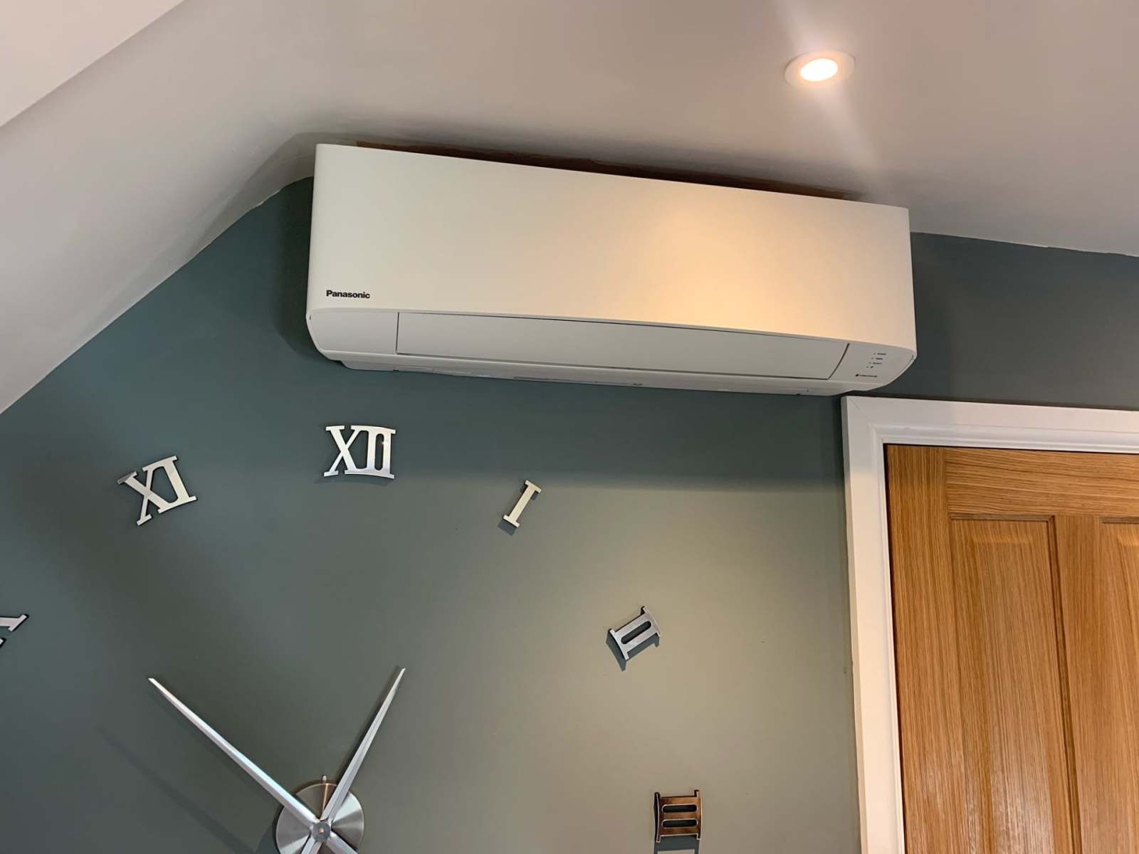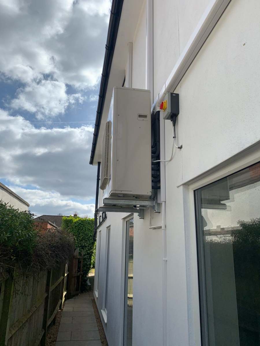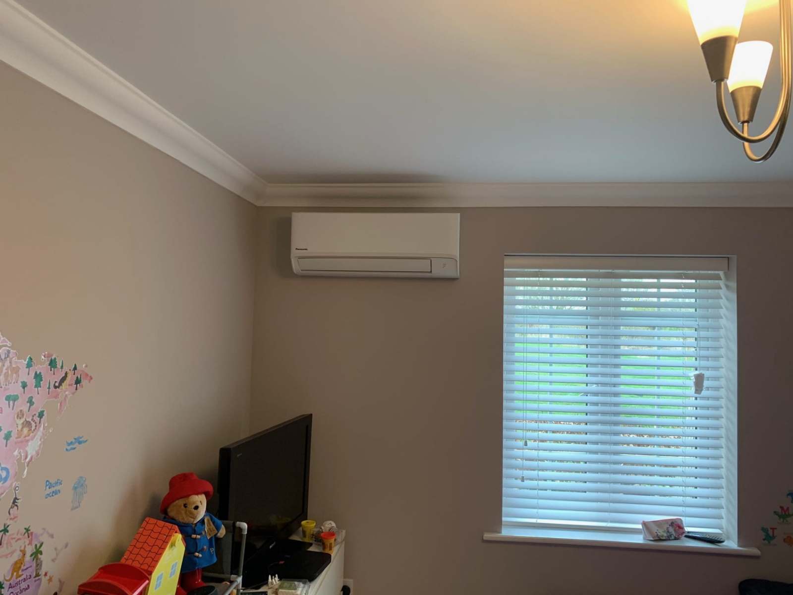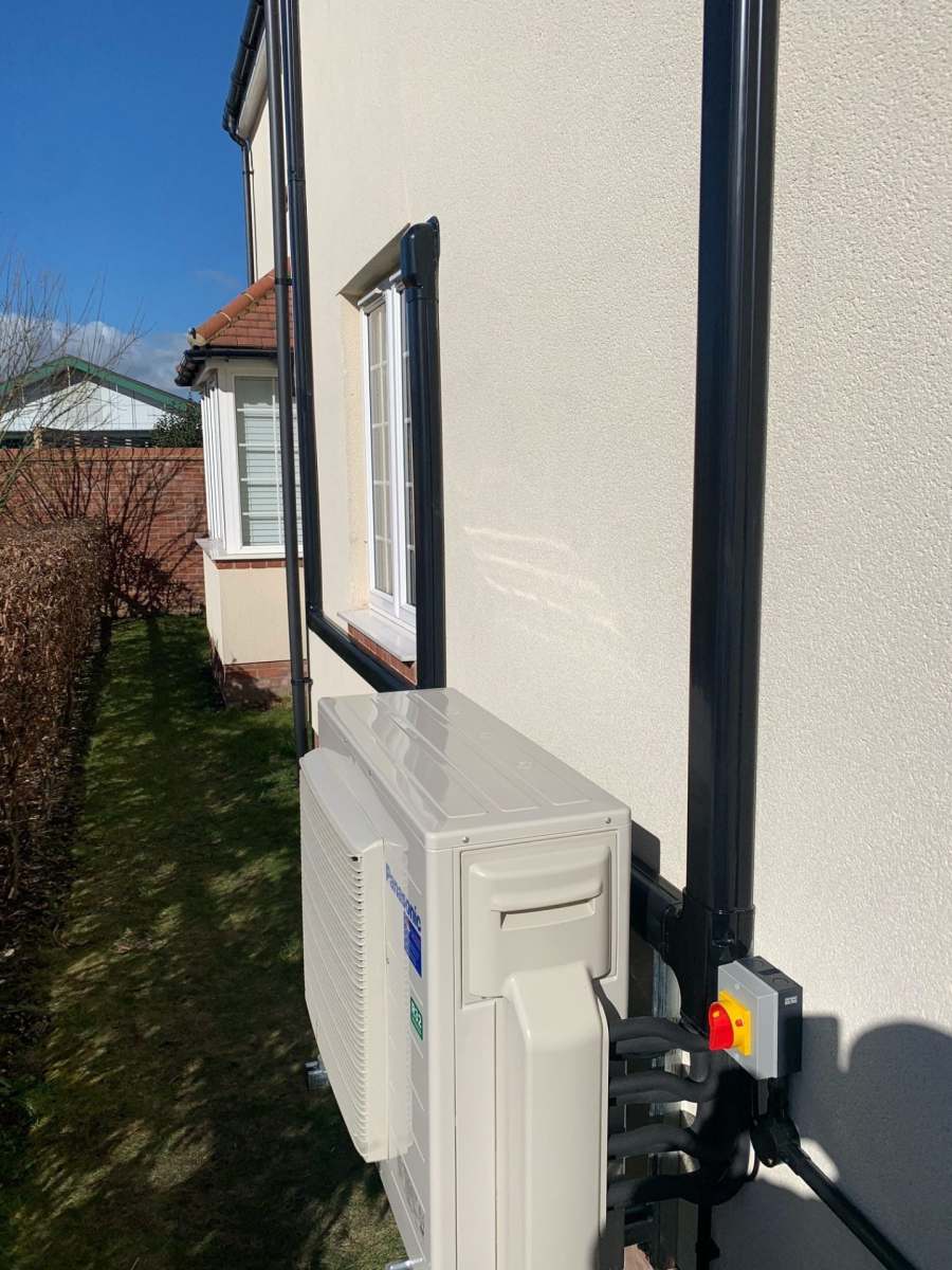 Another multi split system for a house. One unit needed pipework taking through loft to get to the outside wall. We managed to hide all the pipework in black trunking to match the rain water pipes.